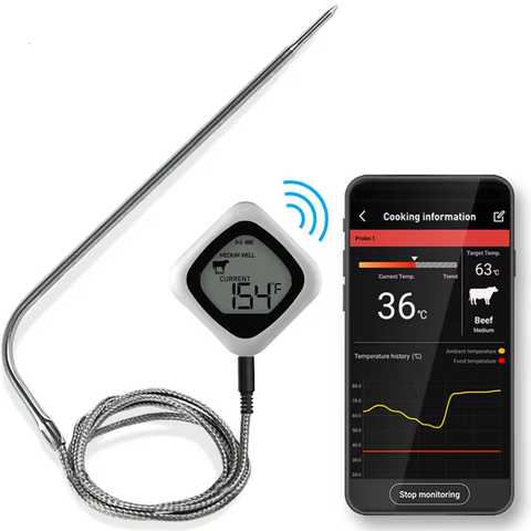 2 зонда умный беспроводной термометр для мяса, 400 футов беспроводной диапазон термометр для мяса для духовки, курильщика, гриля.
